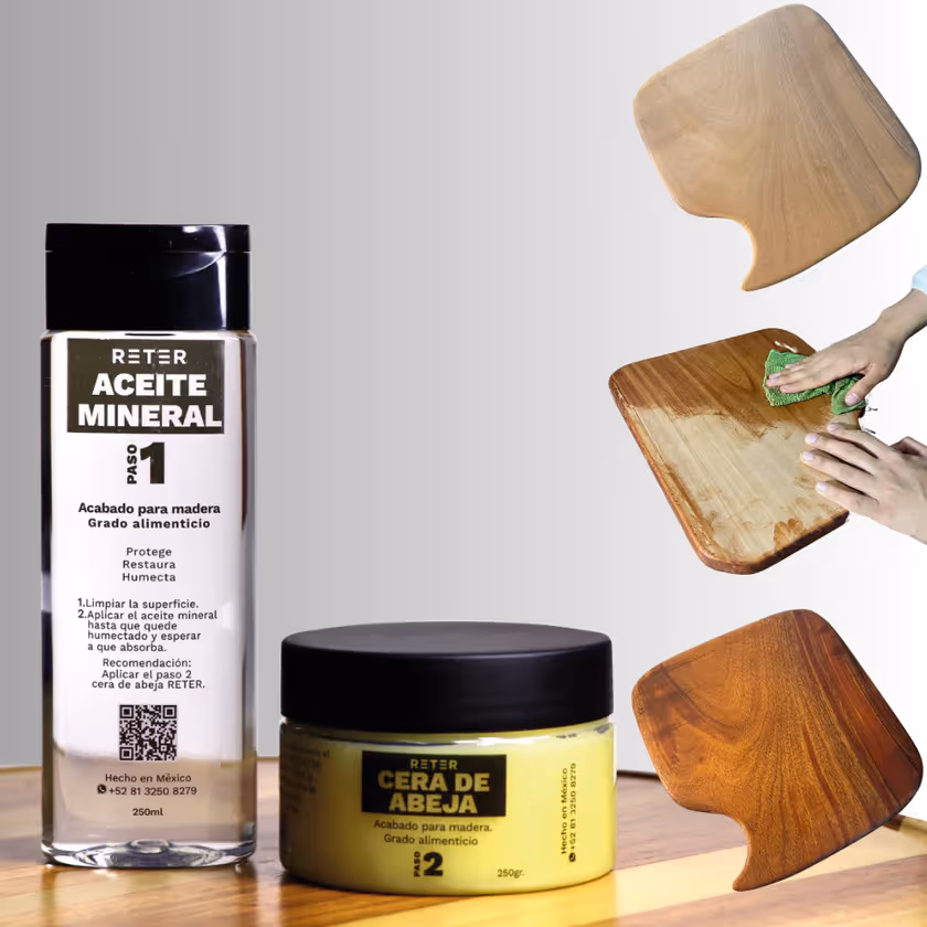 El kit realza la belleza natural de la madera, protegiéndola del desgaste y haciéndola más resistente. Además, al ser de "grado alimenticio", es seguro para utensilios de cocina.